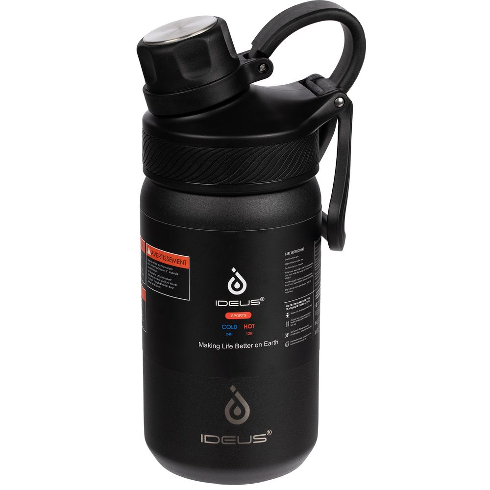 - Конструкция с двойными стенками и вакуумной изоляцией сохраняет содержимое холодным до 24 часов, горячим — до 12 часов