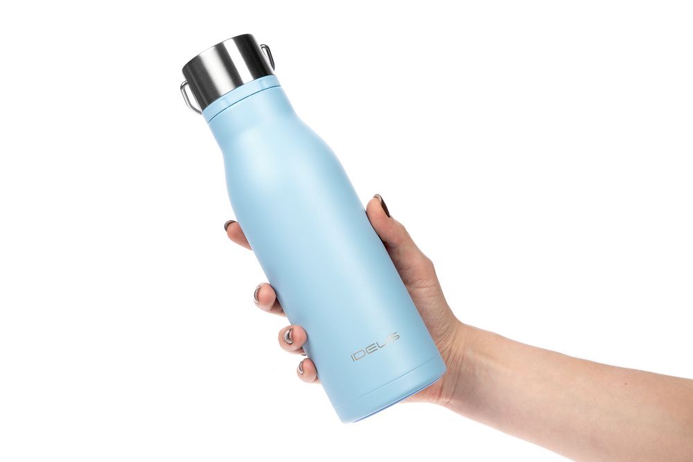 Вместительная бутылка для воды классической формы.
