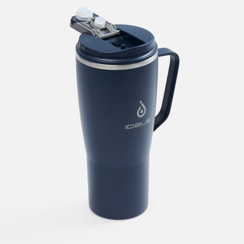 - 2 крышки в комплекте: одна на 100% герметичная с механизмом блокировки отверстия для питья, вторая — с отверстием для трубочки